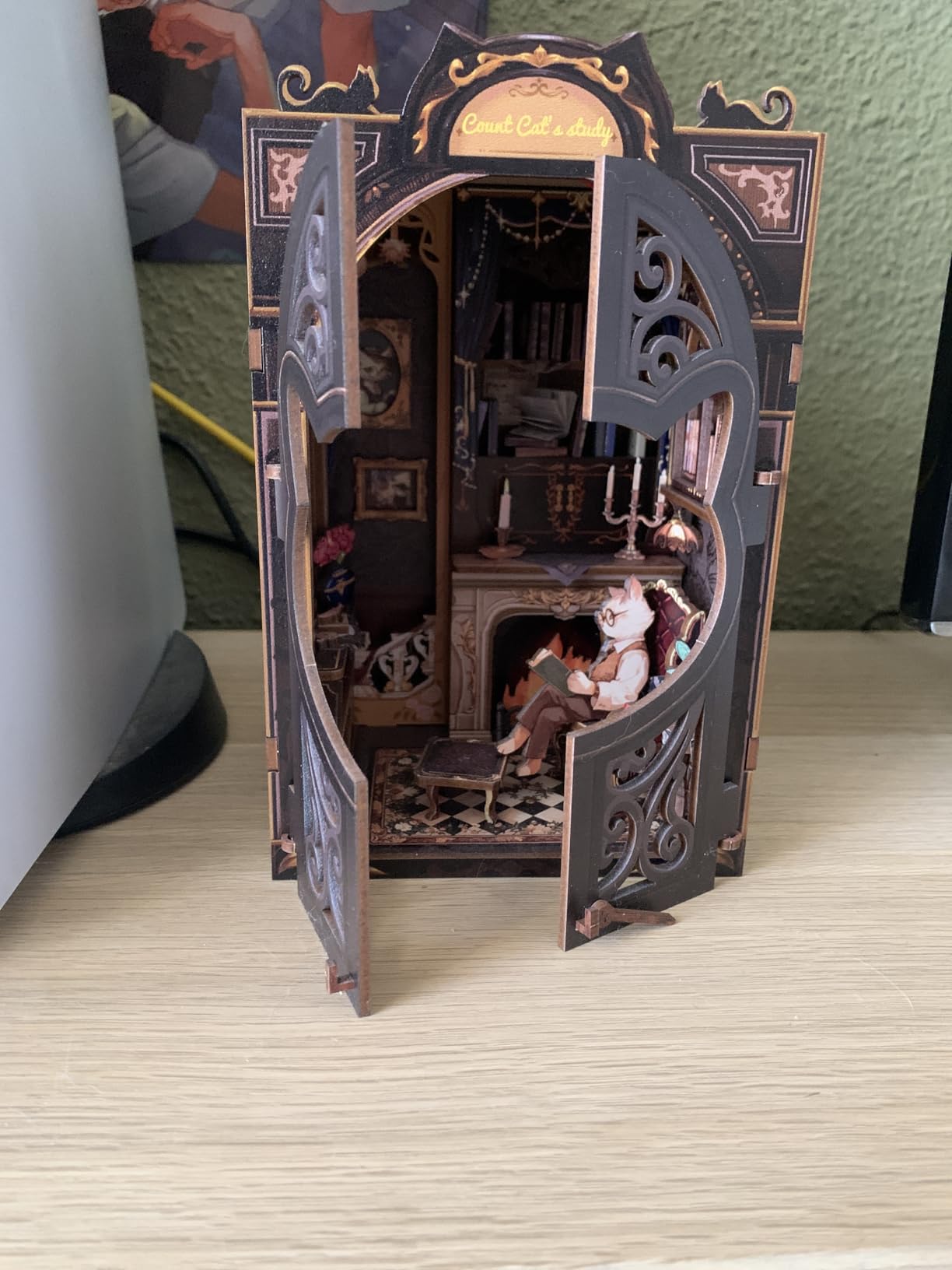 Une expĂ©rience super ! Facile Ă assembler et un rĂ©sultat charmant, jâadore le chat et les livres.